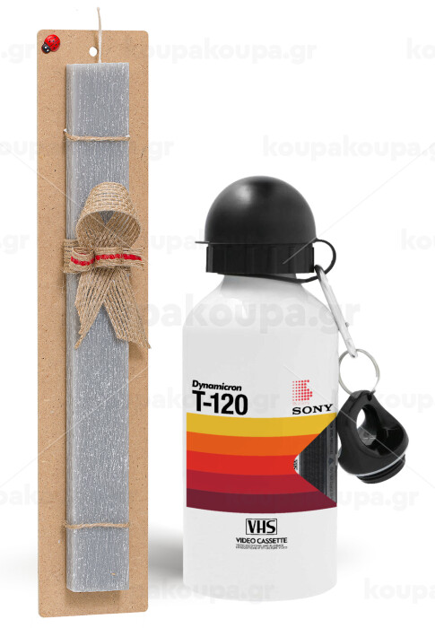VHS sony dynamicron T-120, Easter Set, metallic aluminum water bottle (500ml) & aromatic flat Easter candle (30cm) (GRAY)