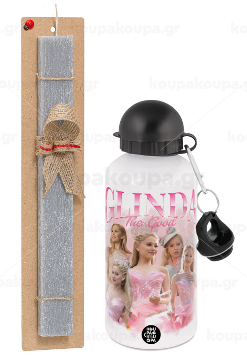 Wicked Glinda, Easter Set, metallic aluminum water bottle (500ml) & aromatic flat Easter candle (30cm) (GRAY)