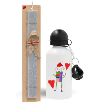 Ο Αλέξανδρος ζωγραφίζει την Αγάπη, Easter Set, metallic aluminum water bottle (500ml) & aromatic flat Easter candle (30cm) (GRAY)
