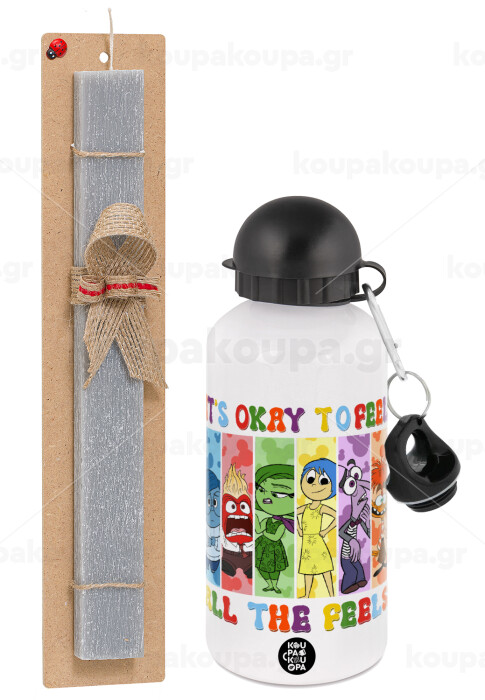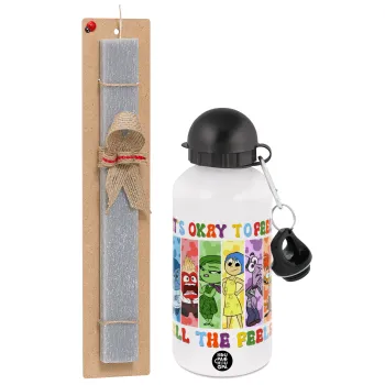 Inside Out It's Okay To Feel All The Feels , Easter Set, metallic aluminum water bottle (500ml) & aromatic flat Easter candle (30cm) (GRAY)