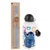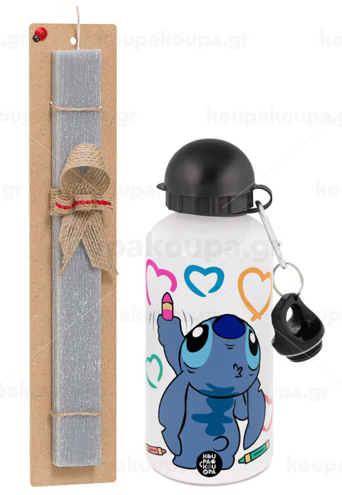Lilo & Stitch painting, Easter Set, metallic aluminum water bottle (500ml) & aromatic flat Easter candle (30cm) (GRAY)