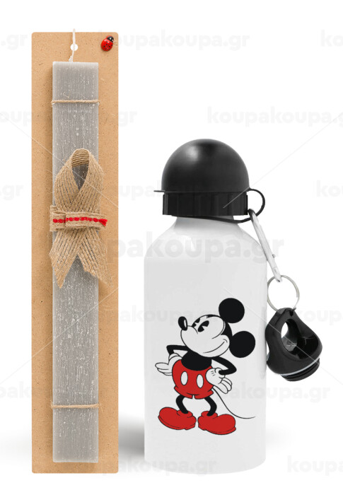 Mickey Classic, Easter Set, metallic aluminum water bottle (500ml) & aromatic flat Easter candle (30cm) (GRAY)