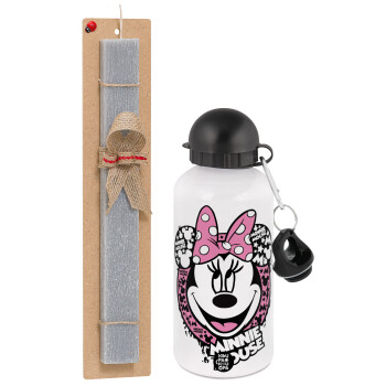 Minnie mouse, Easter Set, metallic aluminum water bottle (500ml) & aromatic flat Easter candle (30cm) (GRAY)