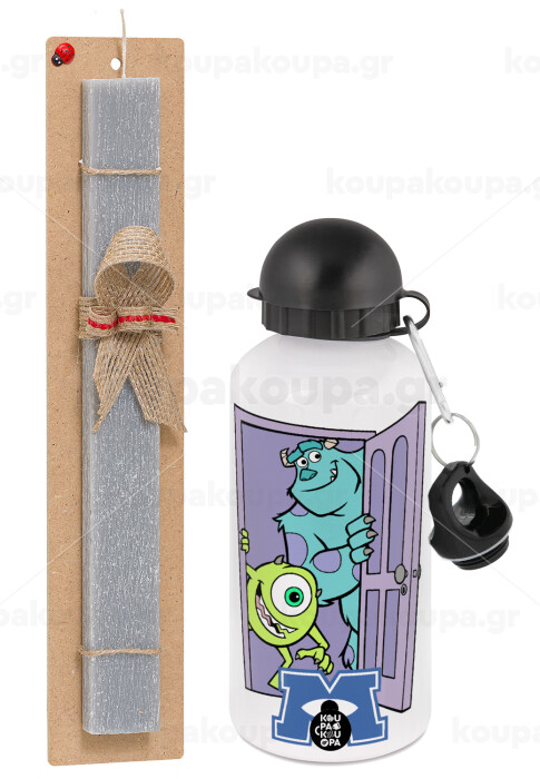 Monster inc, Easter Set, metallic aluminum water bottle (500ml) & aromatic flat Easter candle (30cm) (GRAY)