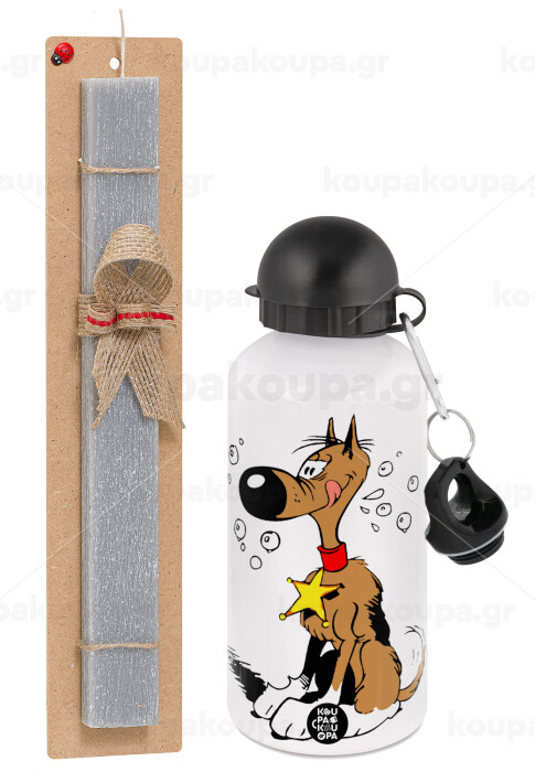 Rantanplan, Easter Set, metallic aluminum water bottle (500ml) & aromatic flat Easter candle (30cm) (GRAY)
