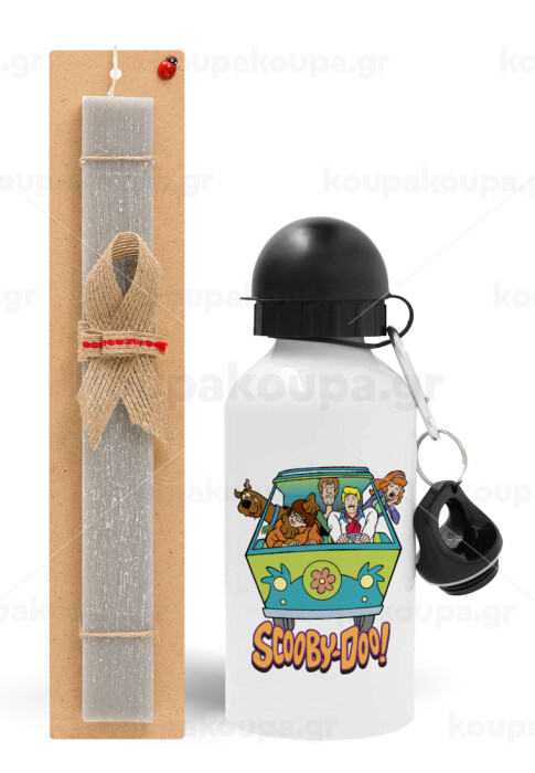 Scooby Doo car, Easter Set, metallic aluminum water bottle (500ml) & aromatic flat Easter candle (30cm) (GRAY)
