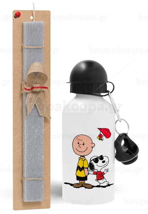Snoopy & Joe, Easter Set, metallic aluminum water bottle (500ml) & aromatic flat Easter candle (30cm) (GRAY)