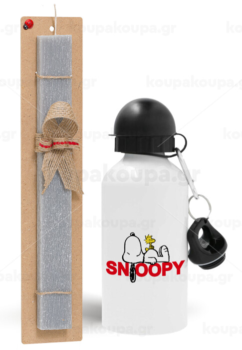 Snoopy sleep, Easter Set, metallic aluminum water bottle (500ml) & aromatic flat Easter candle (30cm) (GRAY)