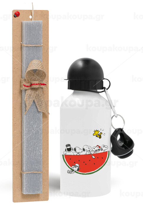 Snoopy summer, Easter Set, metallic aluminum water bottle (500ml) & aromatic flat Easter candle (30cm) (GRAY)