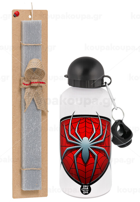 Spider-man, Easter Set, metallic aluminum water bottle (500ml) & aromatic flat Easter candle (30cm) (GRAY)