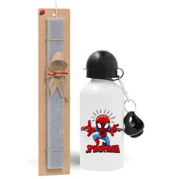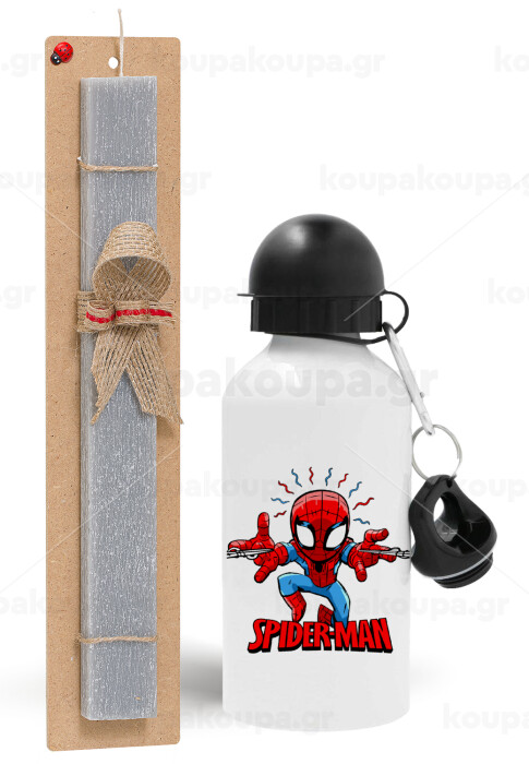 Spiderman flying, Easter Set, metallic aluminum water bottle (500ml) & aromatic flat Easter candle (30cm) (GRAY)