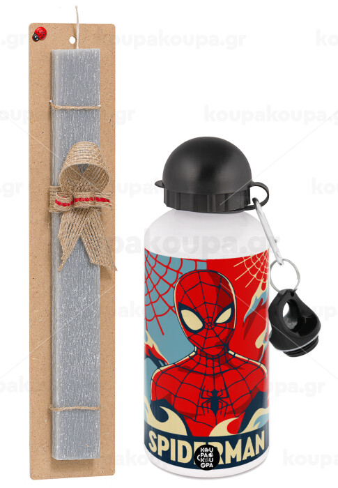 Spiderman kid, Easter Set, metallic aluminum water bottle (500ml) & aromatic flat Easter candle (30cm) (GRAY)