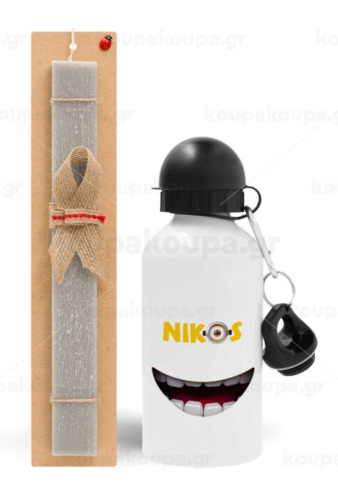 The minions, Easter Set, metallic aluminum water bottle (500ml) & aromatic flat Easter candle (30cm) (GRAY)