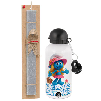 The Smurfs, Easter Set, metallic aluminum water bottle (500ml) & aromatic flat Easter candle (30cm) (GRAY)