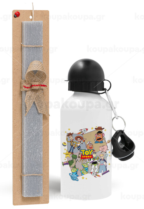 toystory characters, Easter Set, metallic aluminum water bottle (500ml) & aromatic flat Easter candle (30cm) (GRAY)