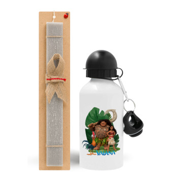 Vaiana, Easter Set, metallic aluminum water bottle (500ml) & aromatic flat Easter candle (30cm) (GRAY)