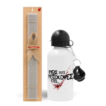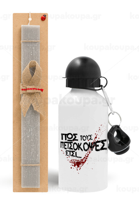 Πως τους πετσόκοψες έτσι..., Easter Set, metallic aluminum water bottle (500ml) & aromatic flat Easter candle (30cm) (GRAY)