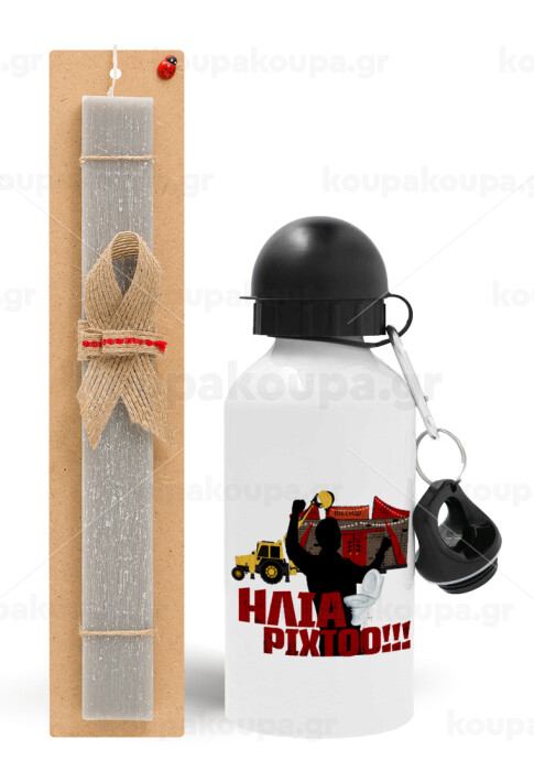 Ηλία ρίχτο!, Easter Set, metallic aluminum water bottle (500ml) & aromatic flat Easter candle (30cm) (GRAY)
