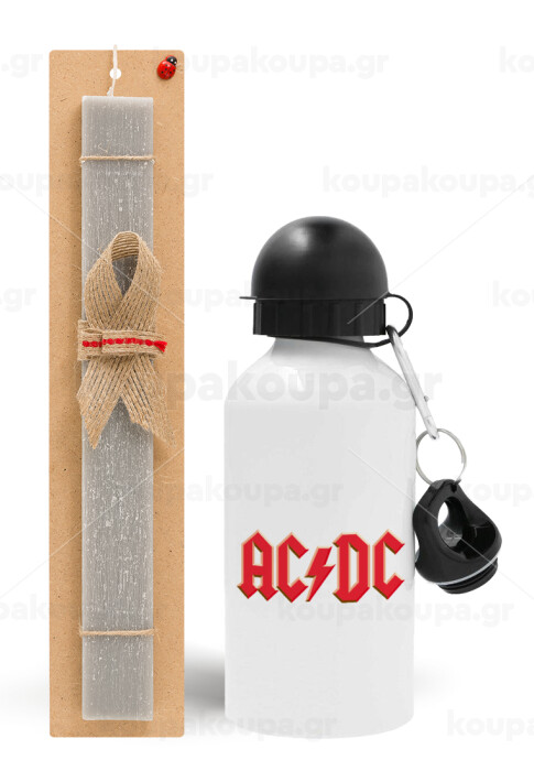 AC/DC, Easter Set, metallic aluminum water bottle (500ml) & aromatic flat Easter candle (30cm) (GRAY)