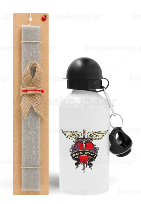 Bon Jovi, Easter Set, metallic aluminum water bottle (500ml) & aromatic flat Easter candle (30cm) (GRAY)