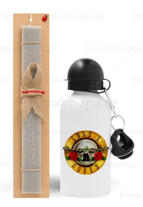 Guns N' Roses, Easter Set, metallic aluminum water bottle (500ml) & aromatic flat Easter candle (30cm) (GRAY)