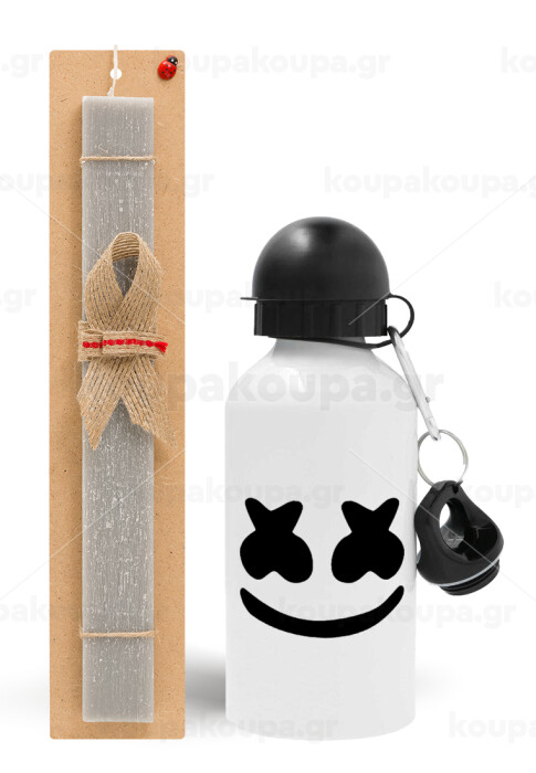 Marshmello, Easter Set, metallic aluminum water bottle (500ml) & aromatic flat Easter candle (30cm) (GRAY)