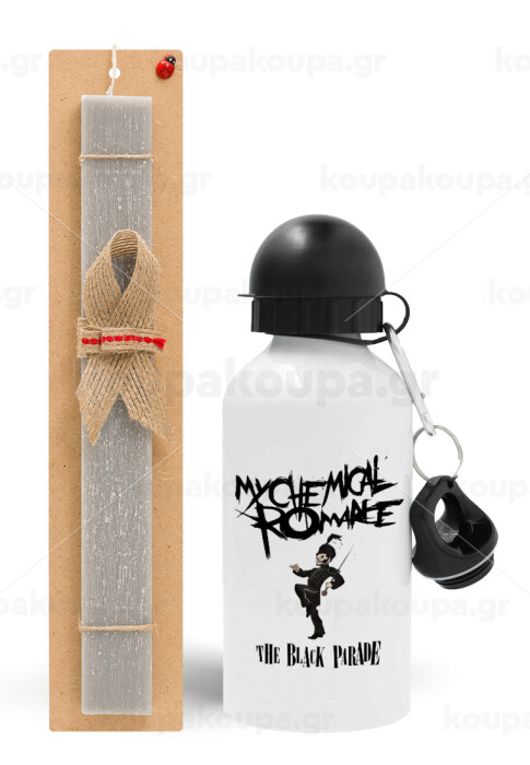 My Chemical Romance Black Parade, Easter Set, metallic aluminum water bottle (500ml) & aromatic flat Easter candle (30cm) (GRAY)