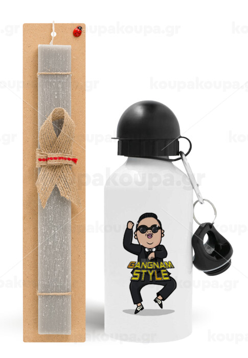 PSY - GANGNAM STYLE, Easter Set, metallic aluminum water bottle (500ml) & aromatic flat Easter candle (30cm) (GRAY)
