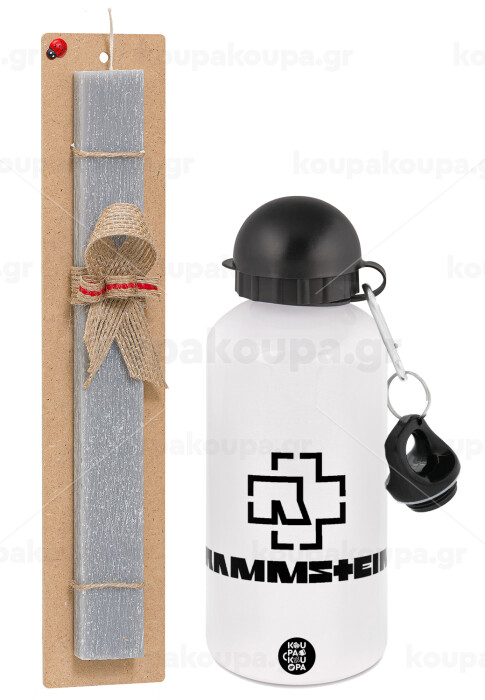 Rammstein, Easter Set, metallic aluminum water bottle (500ml) & aromatic flat Easter candle (30cm) (GRAY)