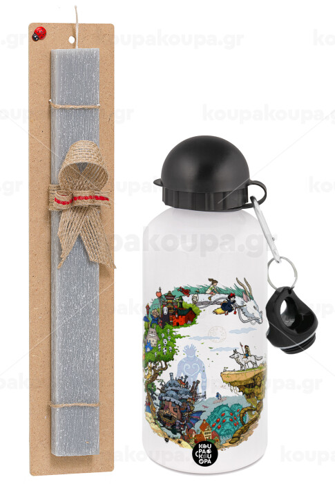 Στούδιο Γκίβλι, Easter Set, metallic aluminum water bottle (500ml) & aromatic flat Easter candle (30cm) (GRAY)