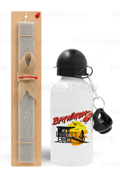 Baywatch, Easter Set, metallic aluminum water bottle (500ml) & aromatic flat Easter candle (30cm) (GRAY)