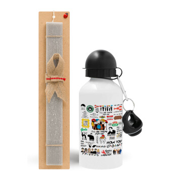 Friends, Easter Set, metallic aluminum water bottle (500ml) & aromatic flat Easter candle (30cm) (GRAY)