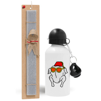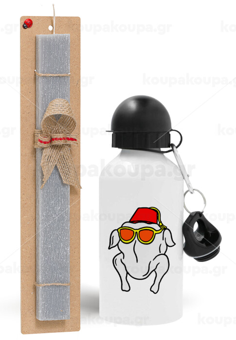 Friends turkey, Easter Set, metallic aluminum water bottle (500ml) & aromatic flat Easter candle (30cm) (GRAY)