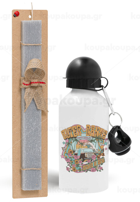 Outerbanks paradise on earth, Easter Set, metallic aluminum water bottle (500ml) & aromatic flat Easter candle (30cm) (GRAY)