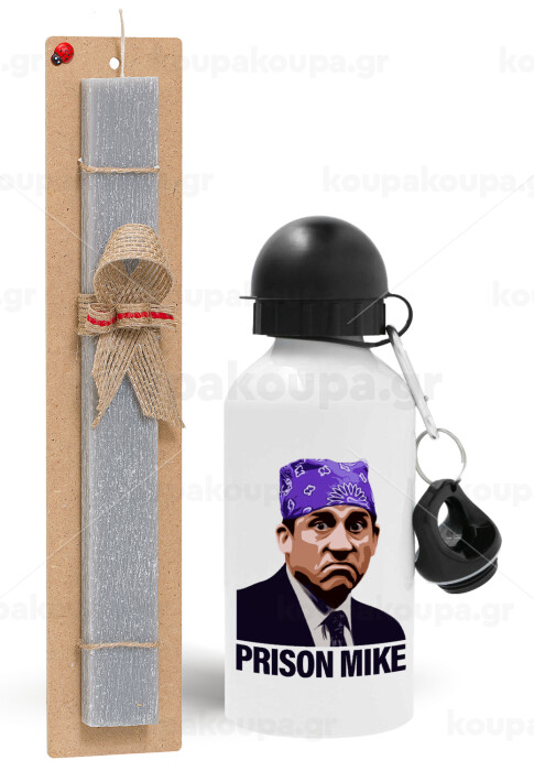 Prison Mike The office, Easter Set, metallic aluminum water bottle (500ml) & aromatic flat Easter candle (30cm) (GRAY)