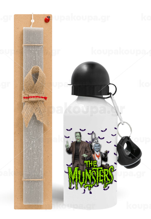 The munsters, Easter Set, metallic aluminum water bottle (500ml) & aromatic flat Easter candle (30cm) (GRAY)