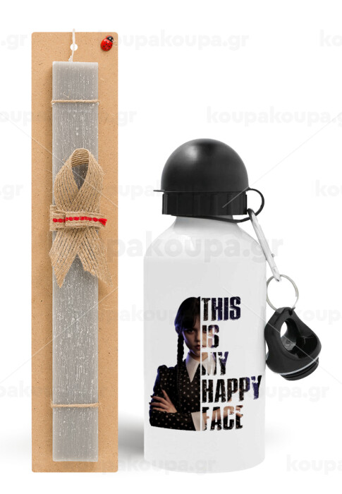 Wednesday, This is my happy face, Easter Set, metallic aluminum water bottle (500ml) & aromatic flat Easter candle (30cm) (GRAY)