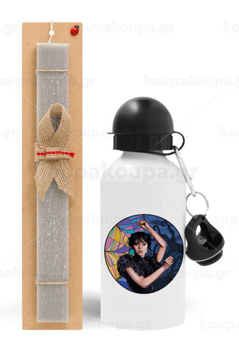 Wednesday dance, Easter Set, metallic aluminum water bottle (500ml) & aromatic flat Easter candle (30cm) (GRAY)