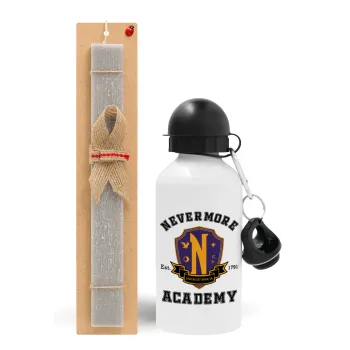 Wednesday Nevermore Academy University, Easter Set, metallic aluminum water bottle (500ml) & aromatic flat Easter candle (30cm) (GRAY)