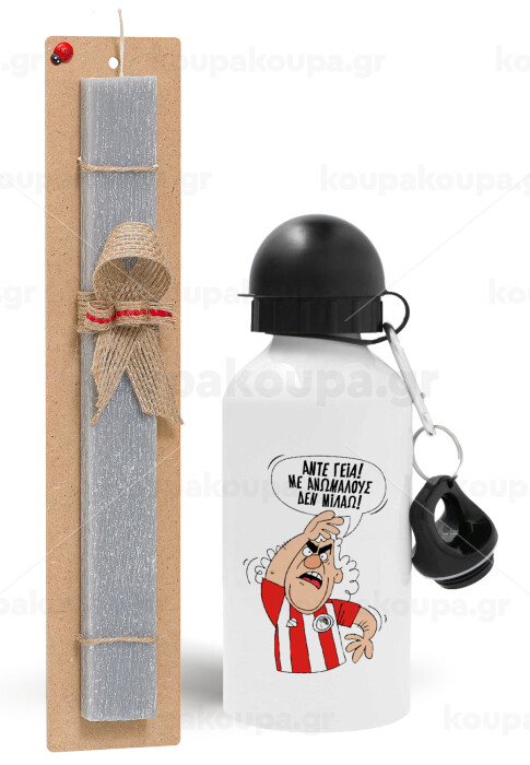 Τάκης, Άντε γεια, με ανώμαλους δεν μιλάω!, Easter Set, metallic aluminum water bottle (500ml) & aromatic flat Easter candle (30cm) (GRAY)