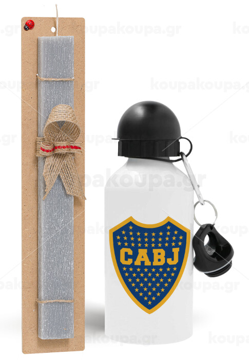 Club Atlético Boca Juniors, Easter Set, metallic aluminum water bottle (500ml) & aromatic flat Easter candle (30cm) (GRAY)