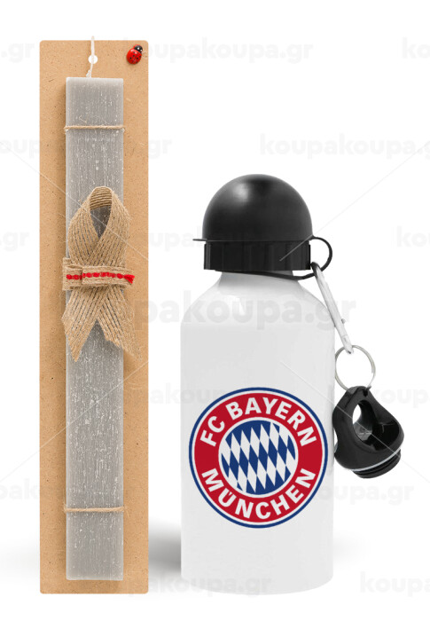 FC Bayern Munich, Easter Set, metallic aluminum water bottle (500ml) & aromatic flat Easter candle (30cm) (GRAY)