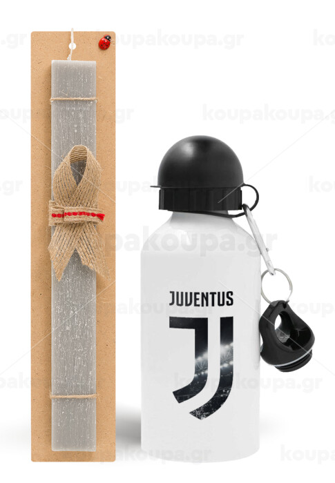 FC Juventus, Easter Set, metallic aluminum water bottle (500ml) & aromatic flat Easter candle (30cm) (GRAY)