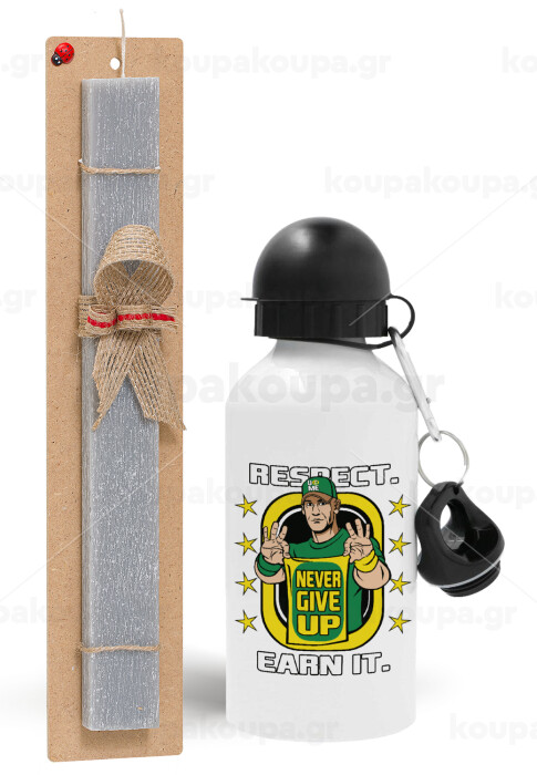 John Cena, Easter Set, metallic aluminum water bottle (500ml) & aromatic flat Easter candle (30cm) (GRAY)