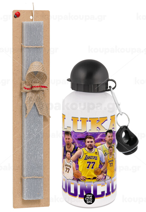 Luka Doncic Basketball , Easter Set, metallic aluminum water bottle (500ml) & aromatic flat Easter candle (30cm) (GRAY)