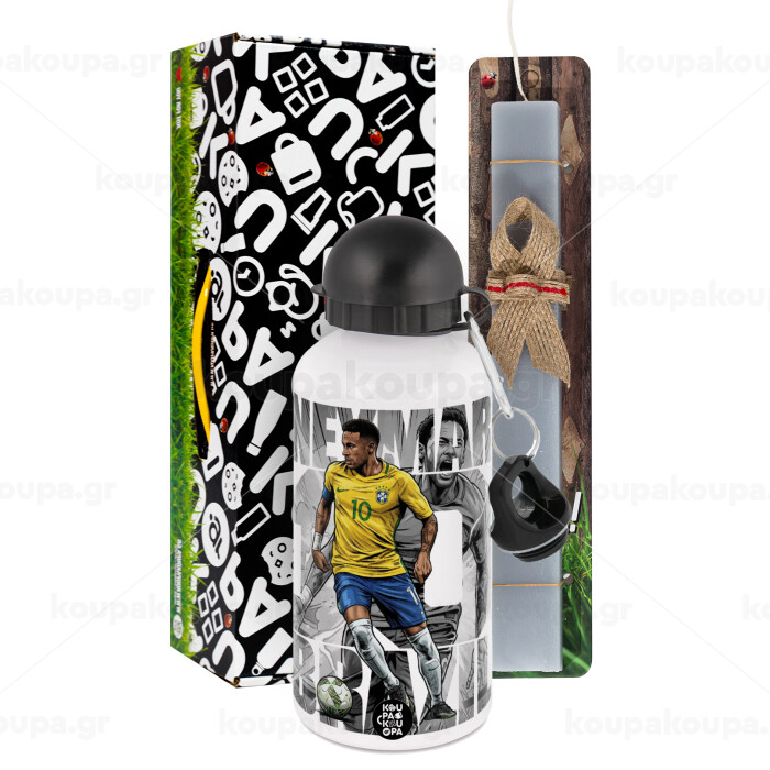 Neymar (Νεϊμάρ), Easter Set, metallic aluminum water bottle (500ml) & aromatic flat Easter candle (30cm) (GRAY)