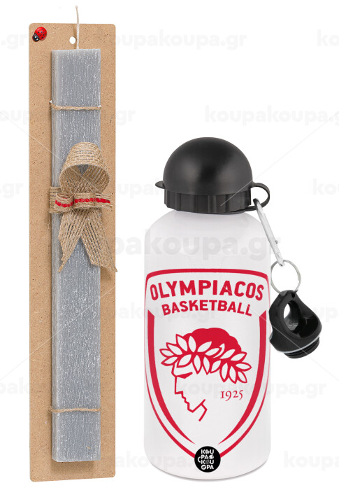 Olympiacos B.C., Easter Set, metallic aluminum water bottle (500ml) & aromatic flat Easter candle (30cm) (GRAY)