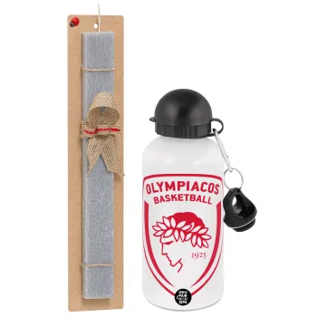 Olympiacos B.C., Easter Set, metallic aluminum water bottle (500ml) & aromatic flat Easter candle (30cm) (GRAY)