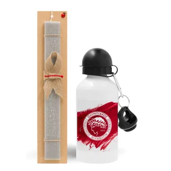 Olympiacos F.C., Easter Set, metallic aluminum water bottle (500ml) & aromatic flat Easter candle (30cm) (GRAY)