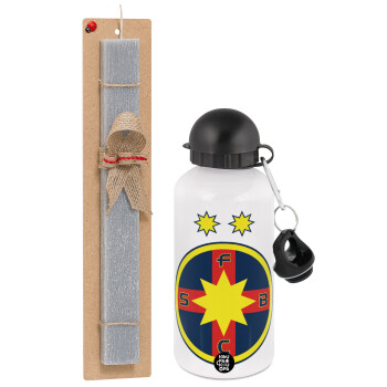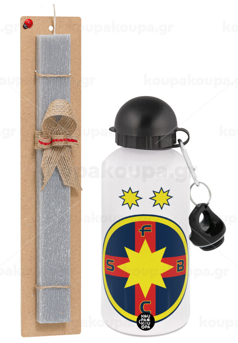FC Steaua Bucuresti (FCSB), Easter Set, metallic aluminum water bottle (500ml) & aromatic flat Easter candle (30cm) (GRAY)